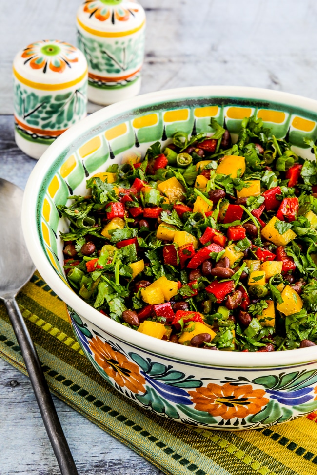 This tasty Black Bean and Pepper Salad has more peppers than beans for a more carb-conscious black bean salad!