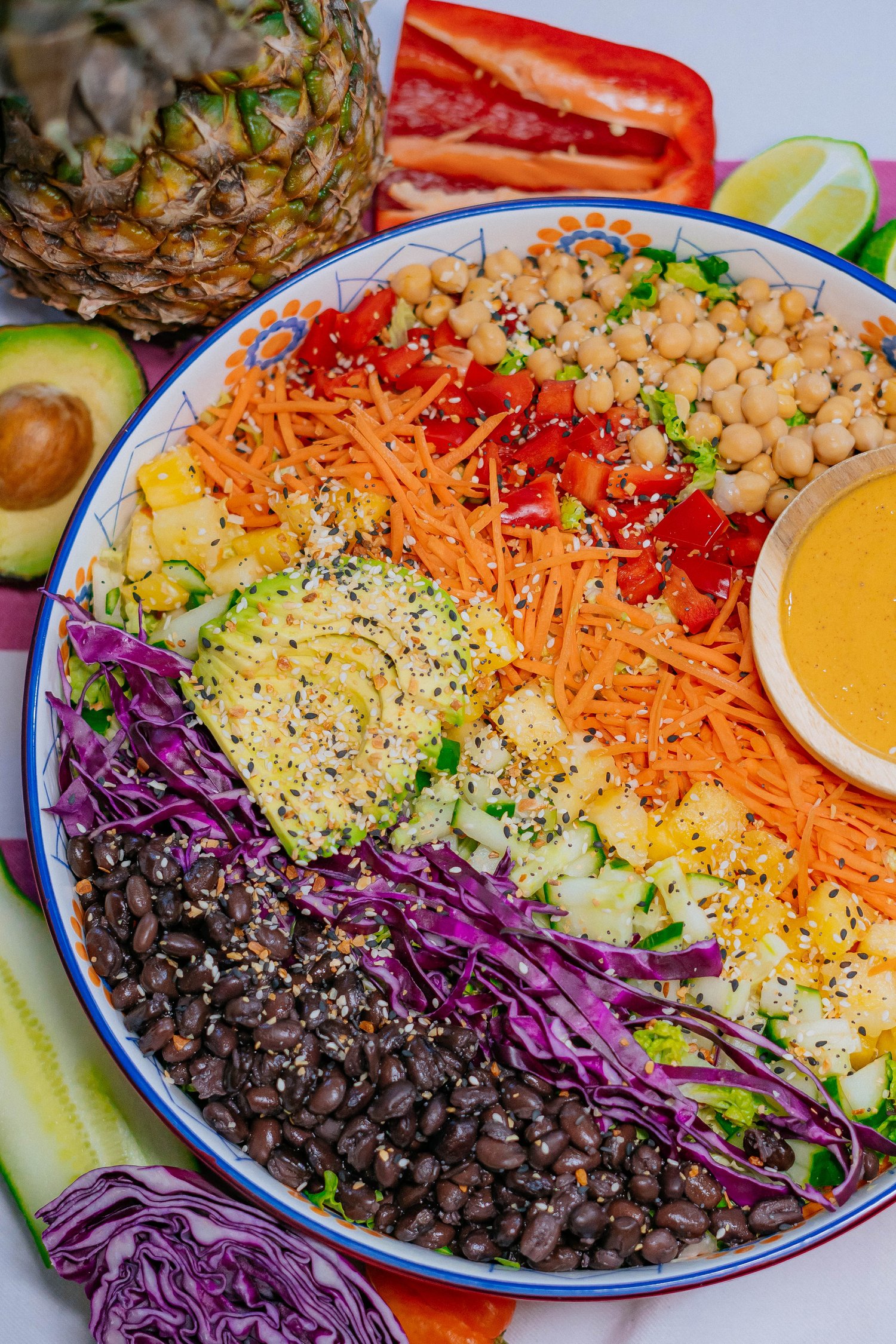 Rainbow Salad with Creamy Pineapple Dressing — One Great Vegan