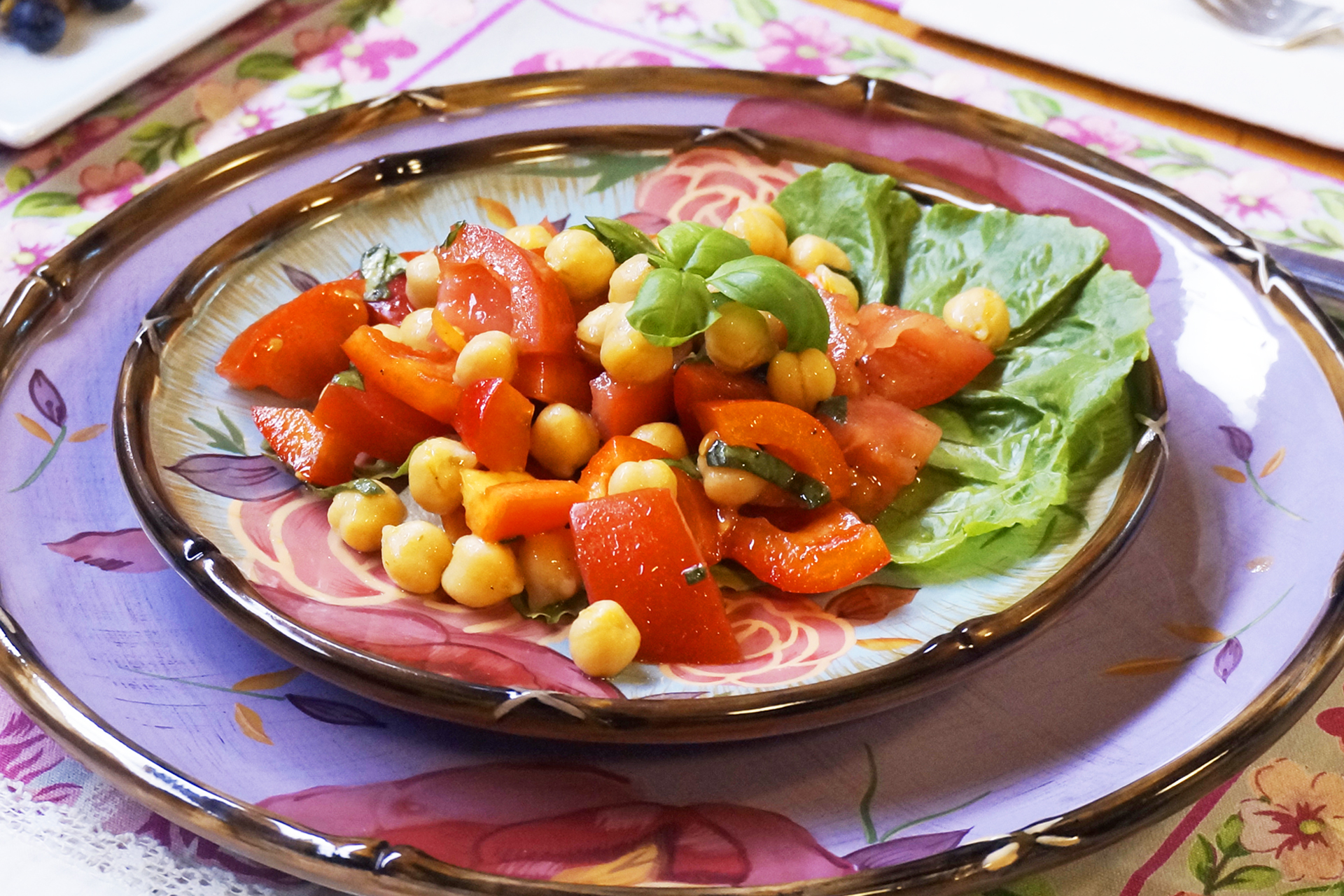 Tomato, Chickpea, and Red Pepper Salad with Fresh Basil - Jazzy Vegetarian - Vegan and Delicious!