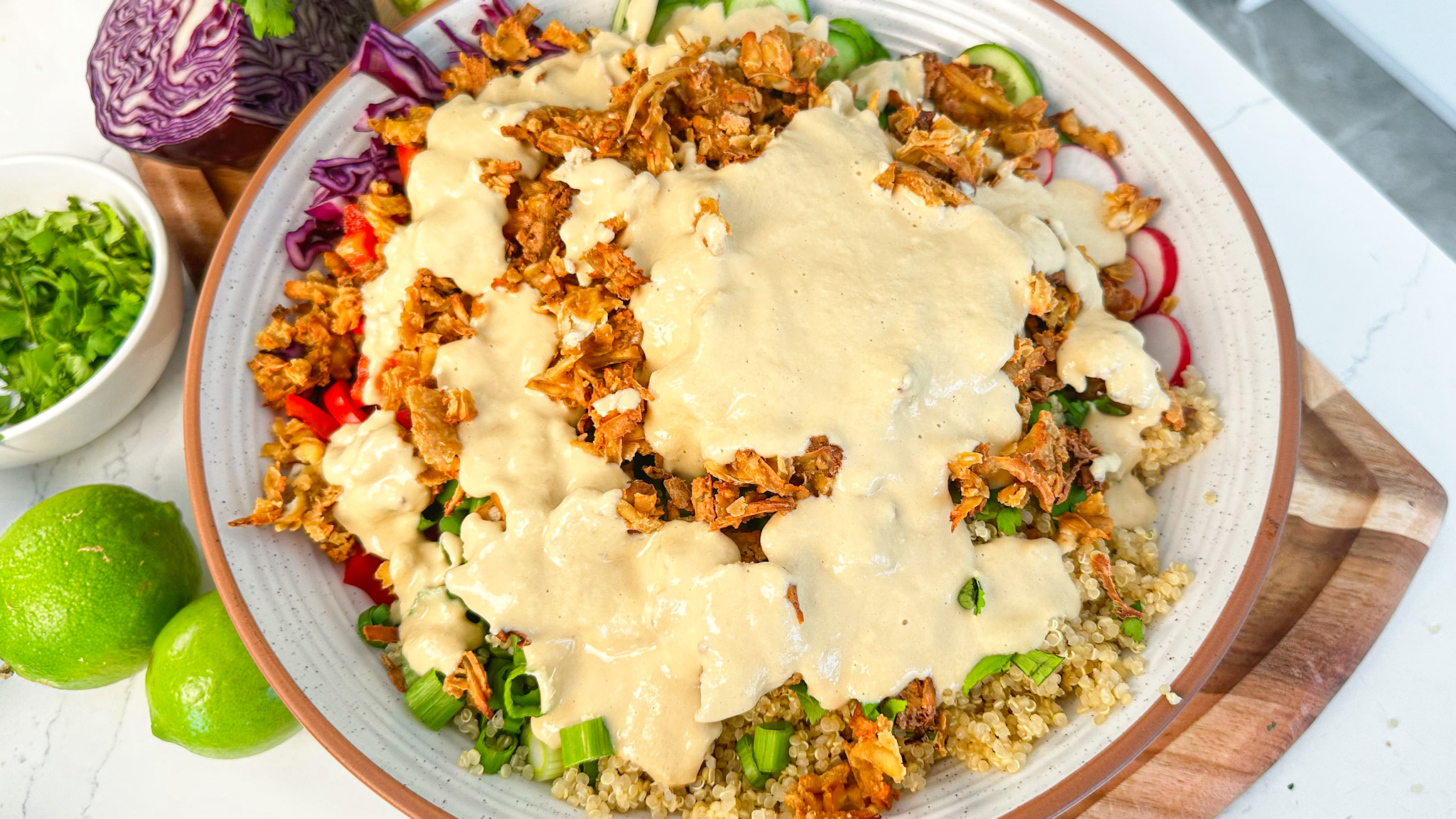 This tropical barley salad combines crunchy bell pepper, sweet pineapple, and a smoky cashew cream sauce. Try this show-stopping salad today!