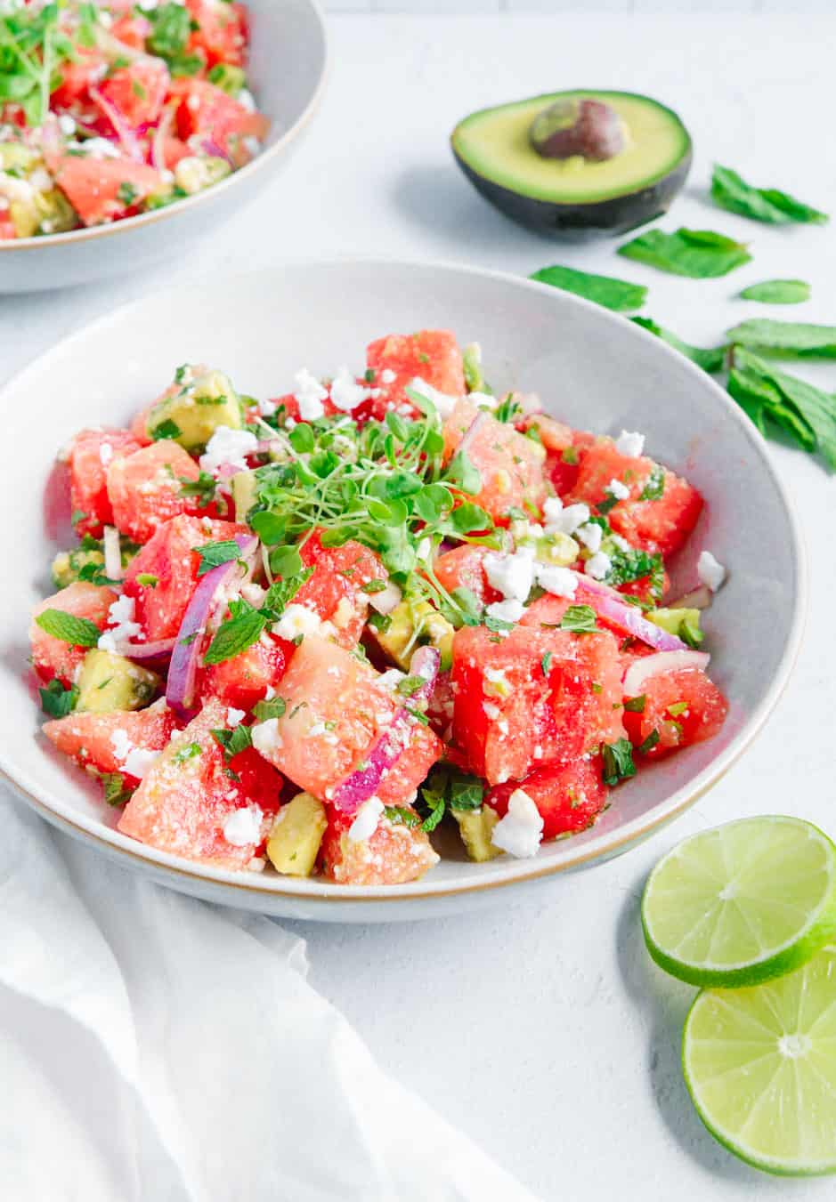 This Watermelon Mint Salad is incredibly refreshing and only takes 10 minutes to prepare. It’s easy, sweet, and so delicious!