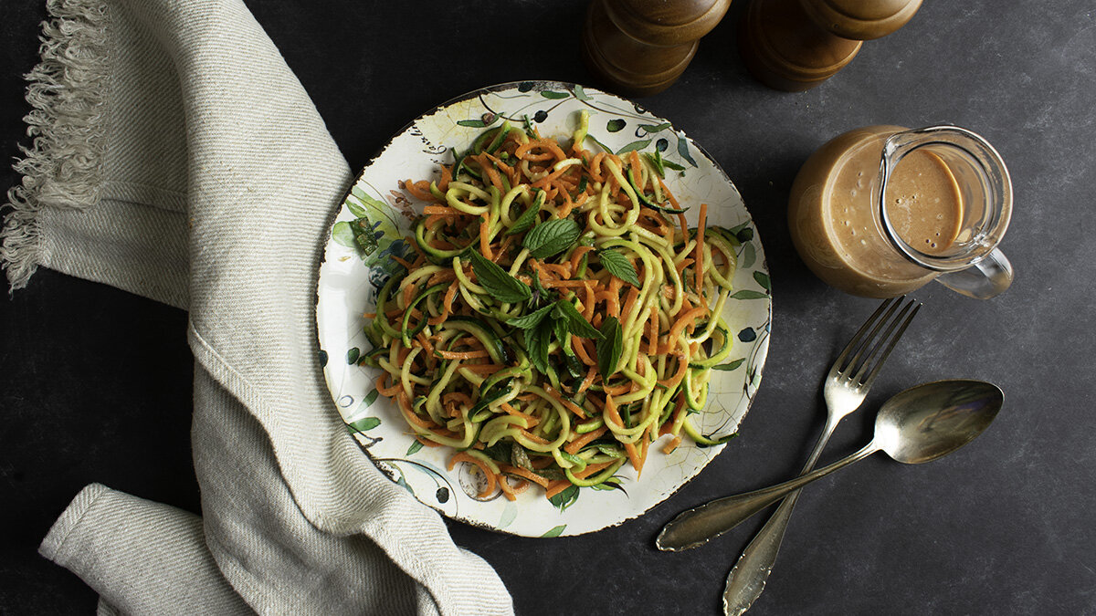 Zucchini Noodle Salad with Peanut Sauce - From My Bowl