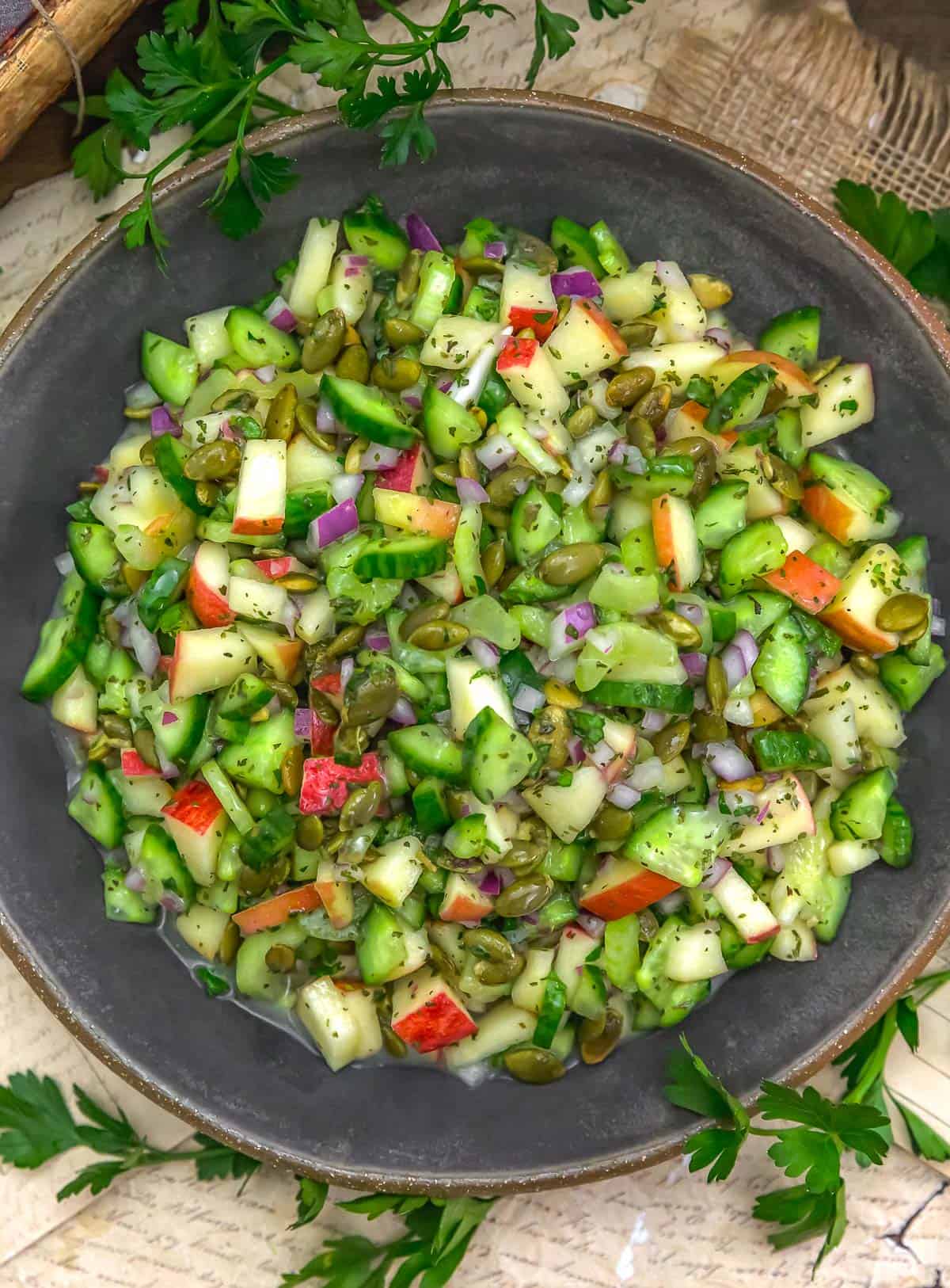 Vegan Apple Cucumber Salad with Mint Yogurt Dressing - Monkey and Me Kitchen Adventures