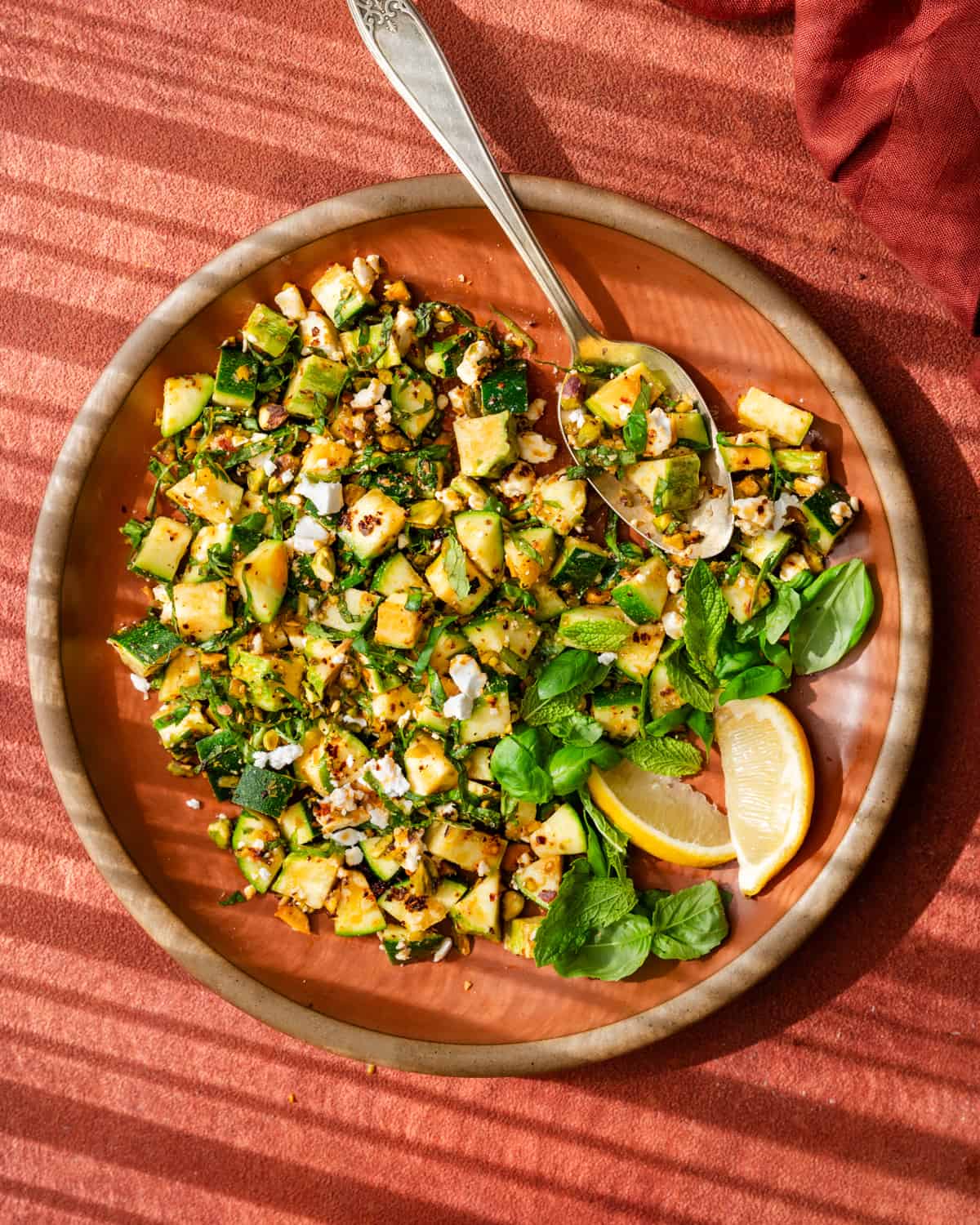 This crunchy and refreshing Zucchini Salad with Cheater’s Chile Oil dresses raw zucchini in a quick & easy chili oil and basil gremolata.