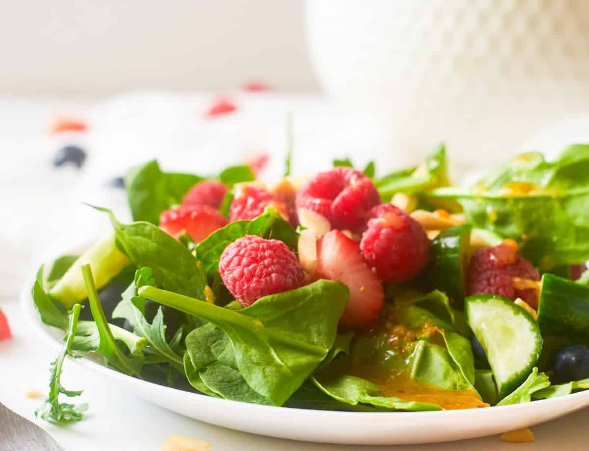 Vegan Berry Salad with Homemade Raspberry Vinaigrette - Mama Veggie