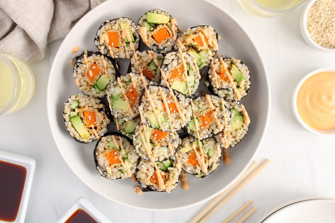 1. Sweet Potato Sushi Rolls Even though sushi is a popular comfort food dish, most sushi isn’t vegan or vegetarian because it contains seafood. Fortunately, these sweet potato sushi rolls from Plant Based Jess are vegan.