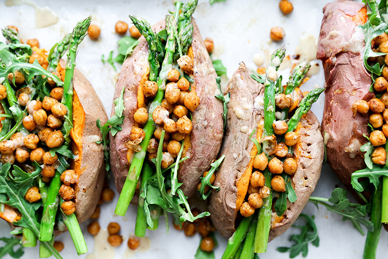 Stuffed Sweet Potatoes with Chickpeas, Asparagus and Arugula – Floating Kitchen