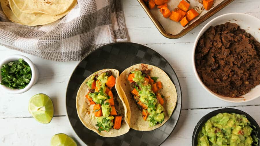 These Sweet Potato & Black Bean Tacos make a healthy vegan and gluten-free meal that can be made in around 30 minutes! Easy flavorful tacos!