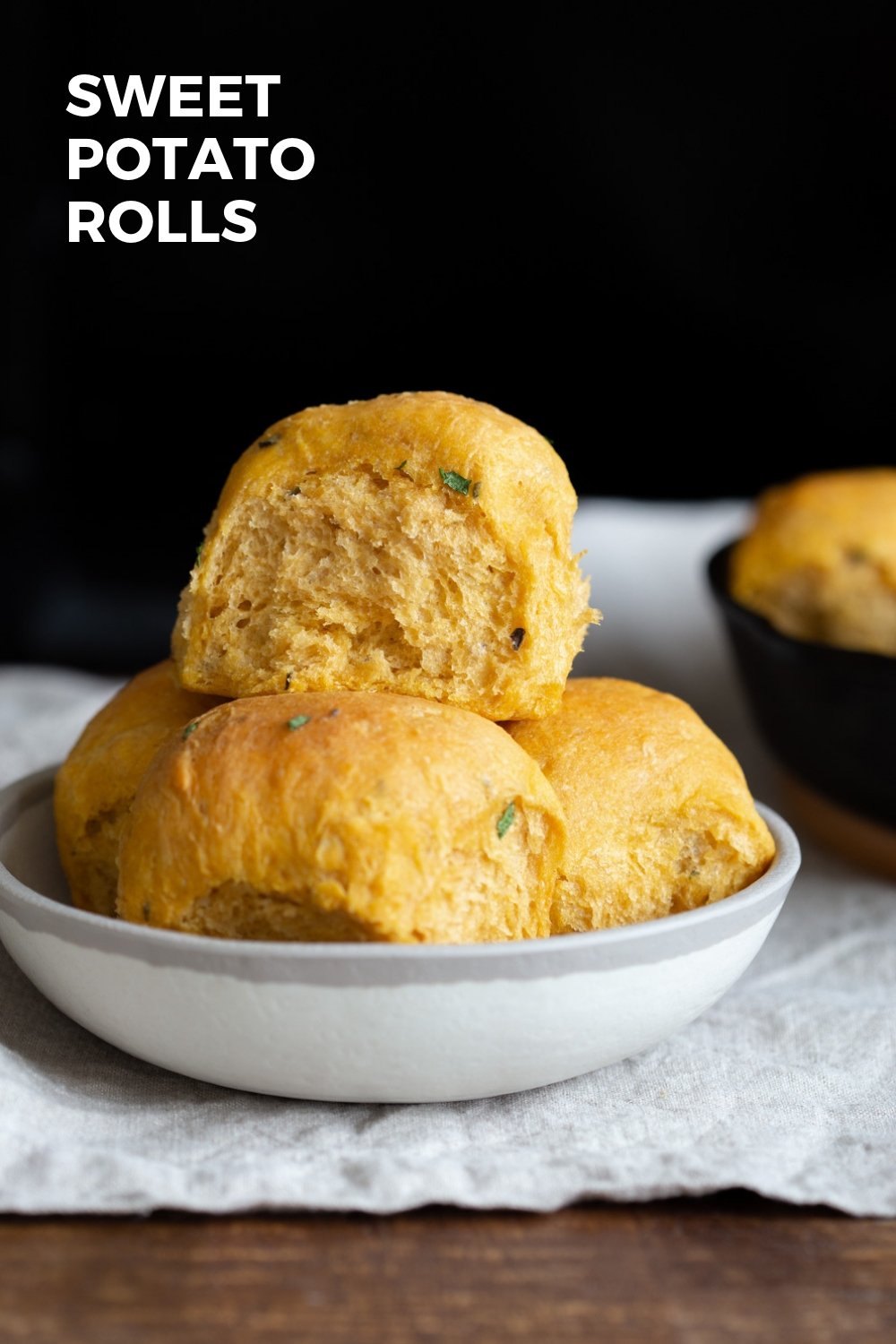 Vegan Sweet Potato Rolls - Soft Herb Dinner Rolls. 7 Ingredients! 1 Bowl, No added Sugar, No Knead. Freezer friendly bread rolls. Palm-oil free Soyfree Nutfree Recipe