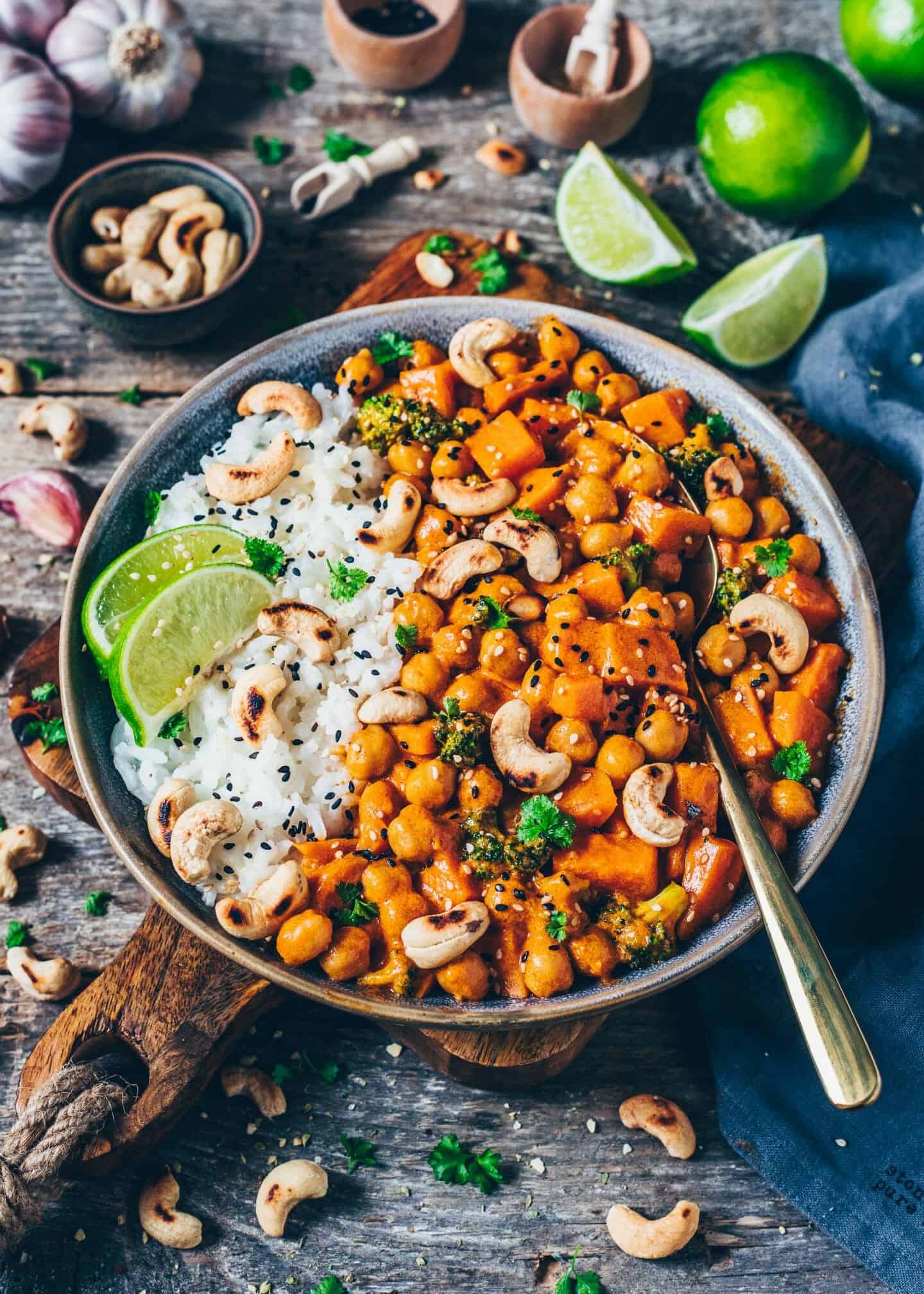 This creamy Vegan Sweet Potato, Chickpea and Coconut Curry with Broccoli is a healthy, simple and gluten-free meal that’s so delicious!