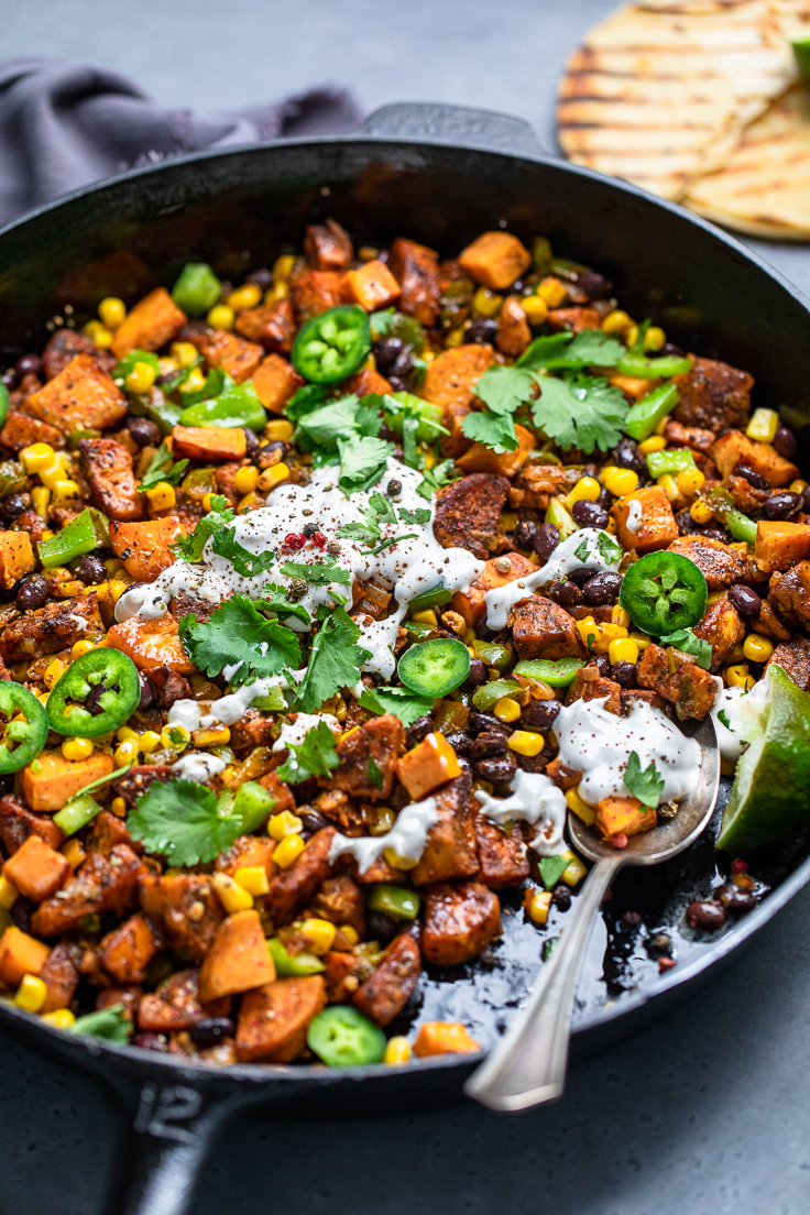 Easy and filling vegan Mexican Sweet Potato Breakfast Hash is great for breakfast or brunch! All made in one skillet.