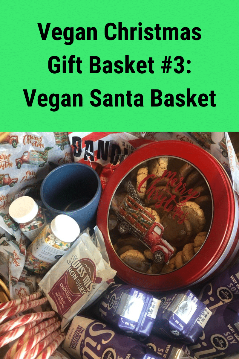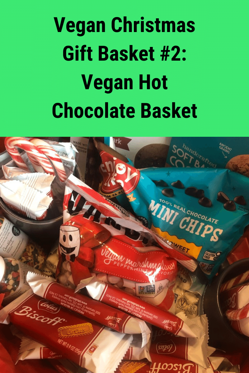 - Fill the rest of the basket with your favorite vegan Christmas goodies, like YumEarth candy canes, vegan sprinkles, and vegan hot chocolate mix.